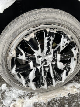 主にブレーキダスト、タイヤWAX等による油汚れです。